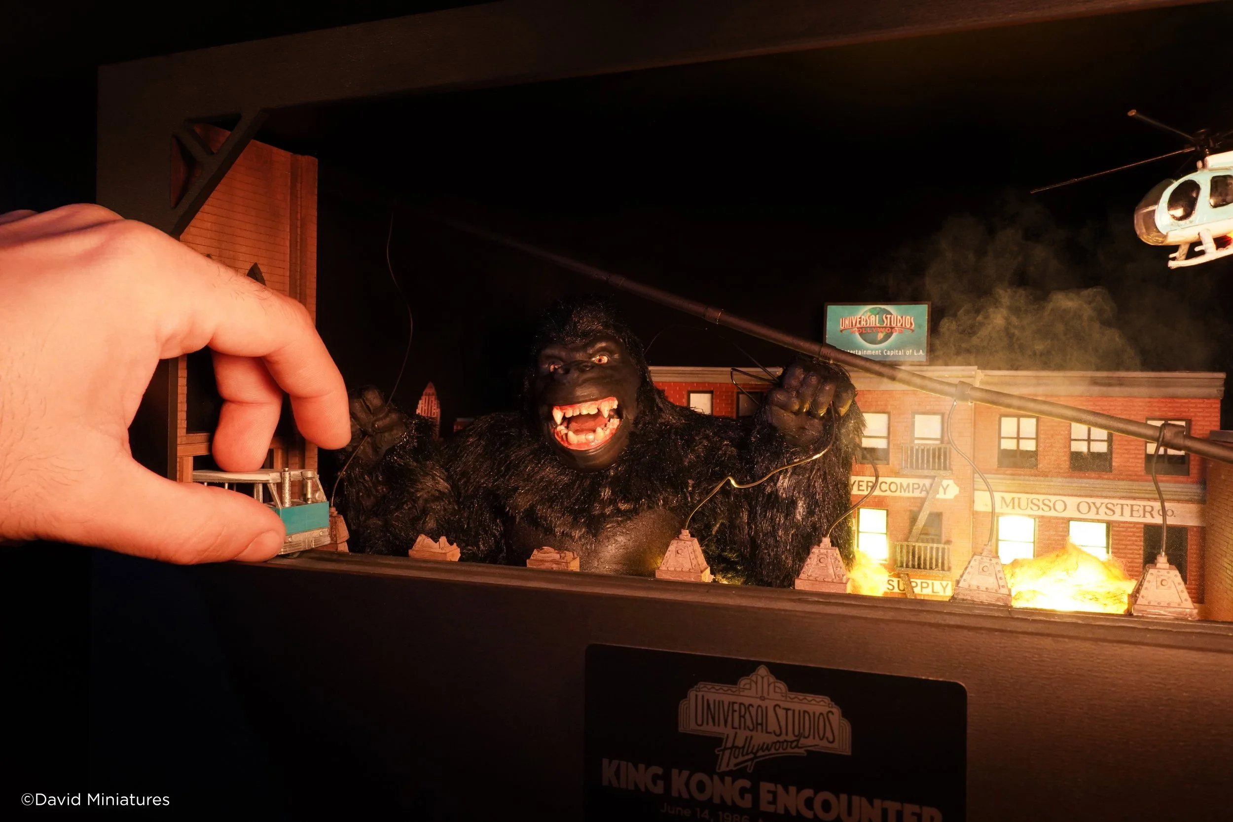 This miniature recreation brings to life the legendary King Kong Encounter from Universal Studios Hollywood’s Studio Tour. Once hailed as one of the most iconic theme park attractions of the 1980s, the ride featured a towering animatronic of Kong confronting guests on the tram. My scale model captures the dramatic moment with intricate detail, honoring the engineering marvel and cinematic magic that made the attraction unforgettable.